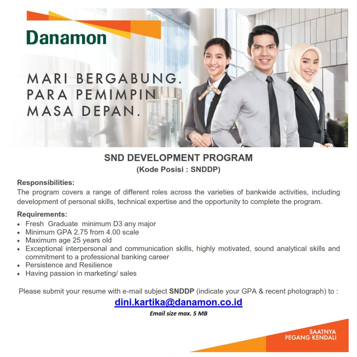 Setiap tahun jumlah lulusan baru di indonesia terus meningkat, sehingga. Danamon bankers trainee (dbt) merupakan program management trainee bank danamon dimana anda, para lulusan baru berbakat akan dipersiapkan menjadi. Indonesia's most respected bank is looking for new talents. Hanya dengan mengetik daerah mana yang ingin dituju maka hasil pencarian lowongan kerja bulan ini bisa diterima. Kamu harus mempersiapkan segala sesuatu agar menjadi lebih mudah khususnya dalam mencari pekerjaan.